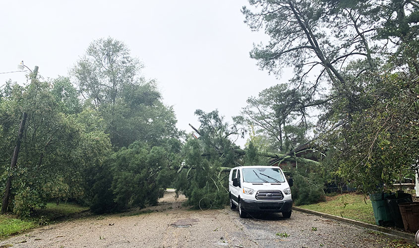Patrice and Greg Boykin, who live in the New Hope Community, lost 10 trees. One of the trees came very close to their home but did not hit the house.