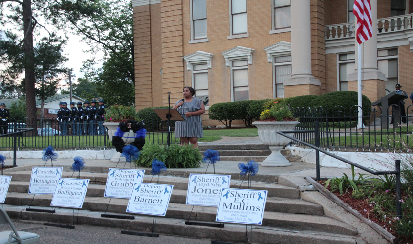 FO10Many gathered together Friday night, May 14, 2015 to honor our local Fallen Officers in the line of duty.  A well prepared program was prepared and presented beginning with the Opening Prayer by Rev. Carol King.  A poem was read by Captain Fred Williams called “The Broken Chain”.  Scripture was read by Sheriff Kenneth Lewis along with his wife, Marilyn Lewis.