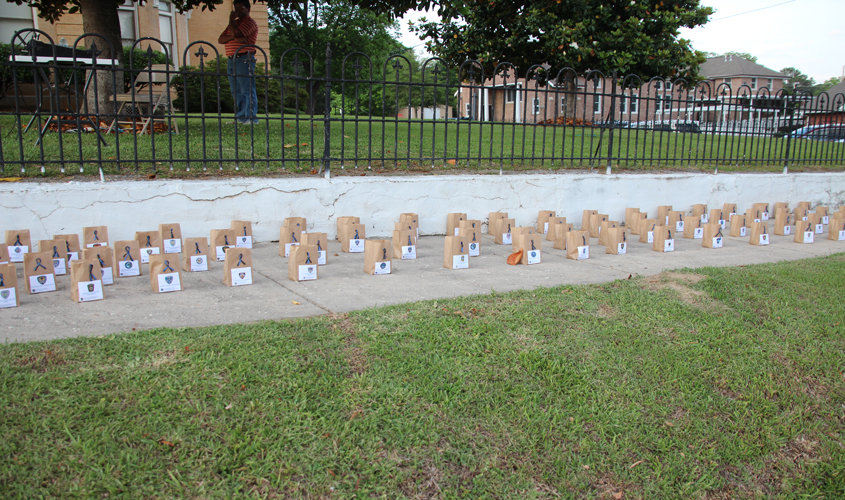 FO7 As the Bag Piper played “Going Home” and “Amazing Grace” the congregation lite candles in their honor.  “The Momument” is a poem read by Undersheriff Will Carroll followed by Laquieta Walker-Dampier singing “Heaven Was Needing a Hero”.   Undersheriff Will Carroll read out the names of our local fallen officers.