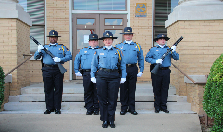 FO6  Honoring the Fallen Officers were then honored by the Three Count Volley presented by the Pearl Police Department Honor Guard as the seven stood in attention and fired 3 rounds (21 gun salute).  Retiring of Colors was presented by our very own SCSO Honor Guard.     FO2 Once the Flag was folded and presented, the Honor Guard was called to attention and in the background you could hear the sound of “Taps” played by The Honorable Mayor Jimmy Clyde.