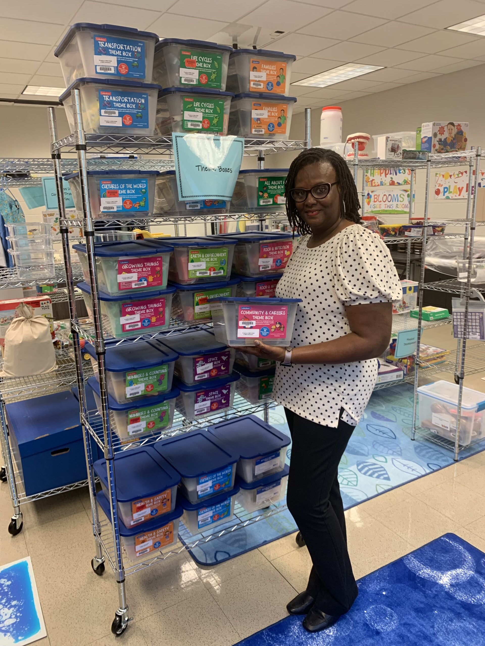 The MSCCR&R at MSU Extension sites house early childhood resources and a “maker space,” a space to create educational materials/activities. Each site also contains a lending library with a variety of learning materials and toys for early childhood professionals, children, and families in the community. These items can be checked out, at no cost, for up to 14 days.