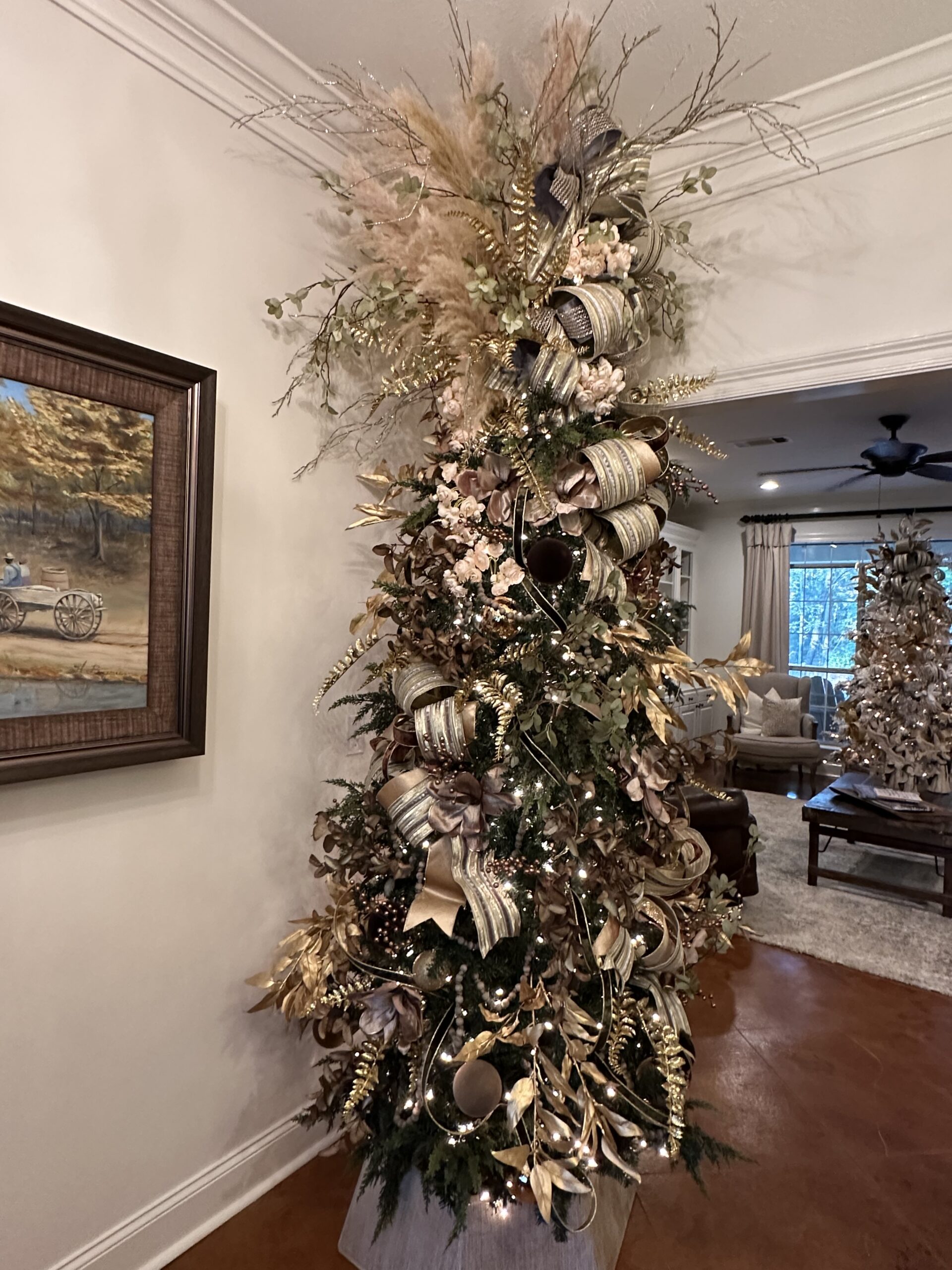Curated items and a lot of ribbon add festive touches throughout the home, and Kim assures people they, too, can create custom Christmas decorations for their homes. It’s all about the ribbon, according to Kim, who recommends ribbon with heavy wire and suggests sourcing such ribbon from Amazon or Etsy.