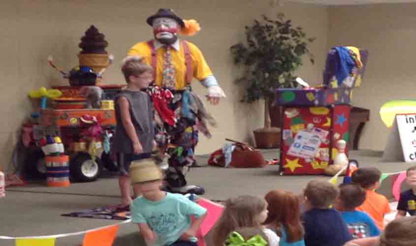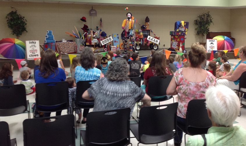 Magee Library enjoyed a visit from Inky the Clown on Tuesday, July 11th. This was the final Summer Reading program for the summer. Inky amazed the crowd with his juggling and magic and kept everyone laughing with his antics. The drawing for the bikes will be held at 12 noon on Friday, July 21st. That will also be the last chance to redeem books for prizes.