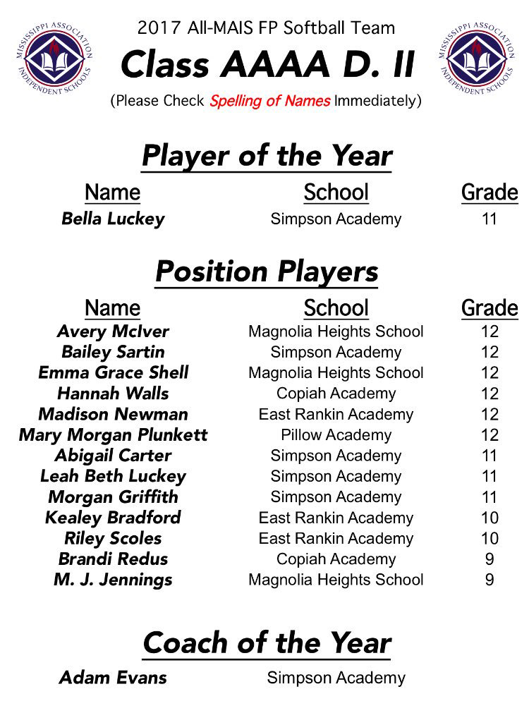 Coach of the year in MAIS Class AAAA D II Adam Evans and Player of the Year in MAIS Class AAAA DII Bella Luckey