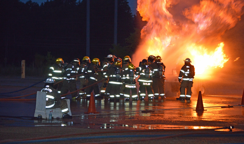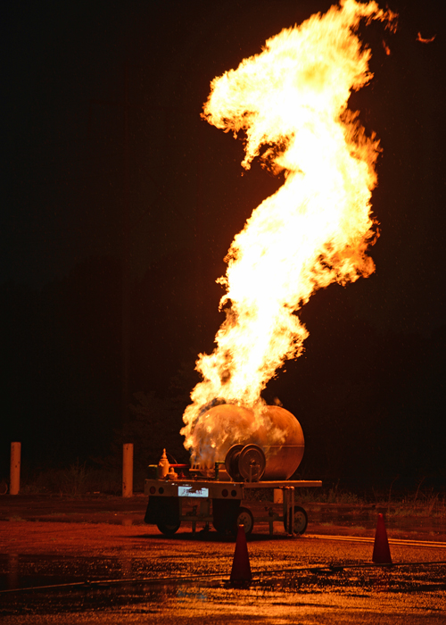 “The MS State Fire Academy makes specialized training available to fire departments across the state concerning propane emergencies. Fire Coodinators can request this training, (all expenses are paid for through grant money received by the State), for the departments in their County. Propane is a gas that has very dangerous characteristics when released. It is put under extreme pressure when being placed in the containers & reduced to a liquid state. When released it returns to a gas & expands 270 times of what it is as a liquid. If ignited, it burns at 3600 degrees. If heated while in the container from an external source, the liquid returns to vapor inside the container & expands beyond the container’s ability to hold it. A volatile explosion can occur, with very damaging & sometimes deadly effects. Simpson County was given the opportunity to receive this training. The Mendenhall FD hosted the classroom portion prior to the field training which was hosted by Magee. 42 students attended the two day exercises. The training was a great success & provided some rather spectacular sights after dark.”