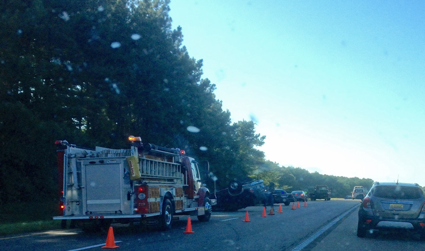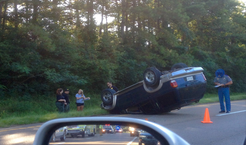 A rollover accident had traffic stopped in the north bound lane of Highway 49. The accident occurred approximately 3 miles south of Mt Olive, just before 6:00 PM.