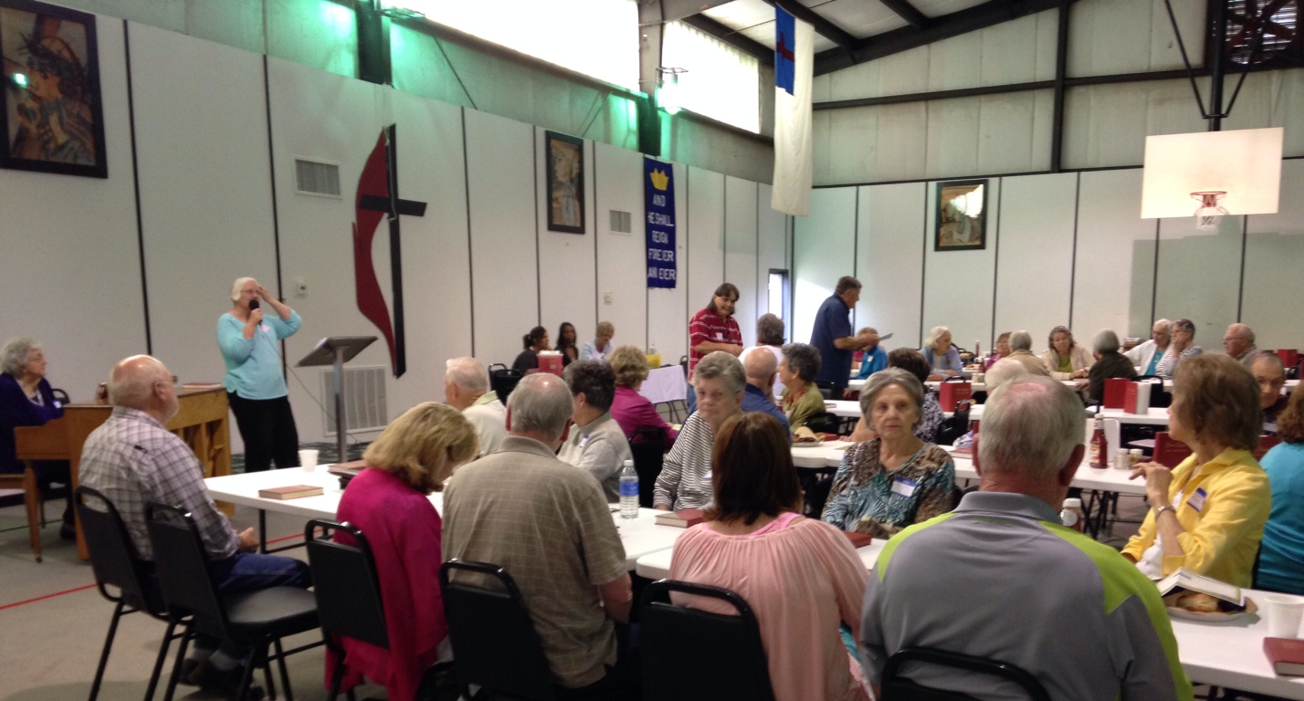 Senior Citizens from the Smith/Simpson Methodist Churches enjoyed a fun day at Harrisville UMC on Thursday, April 23. Leading the singing and group activities was Cluster pastor advisor, Rev. Dianne Harms of Raleigh UMC. Bro. Sammy Napier of Rials Creek UMC opened the day’s activities