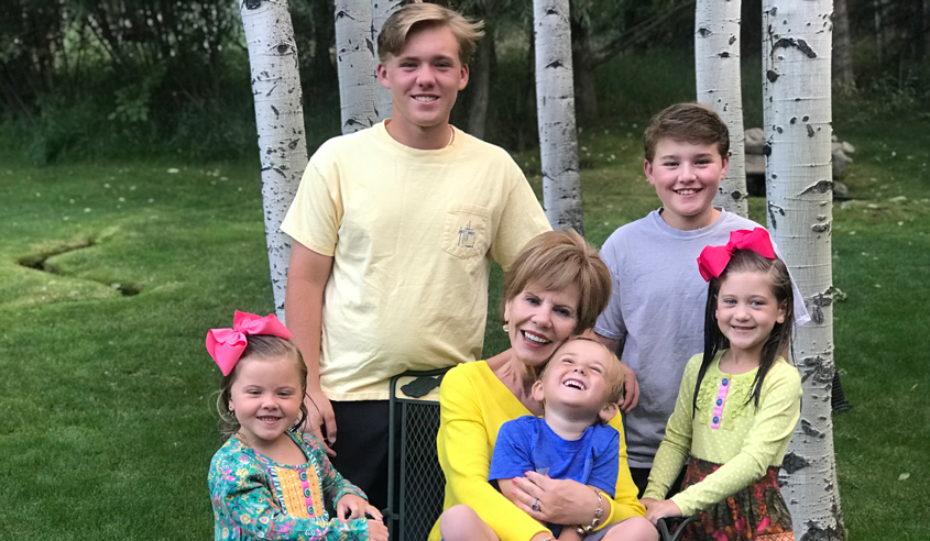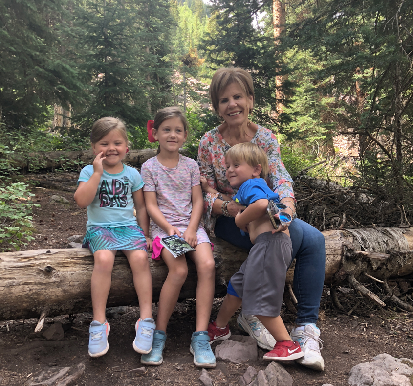 Aspen trees are in the background of the picture with my grands: Harleigh, Hudson, Larkin, Connor, and Preston as well as the picture with Larkin and Harleigh.