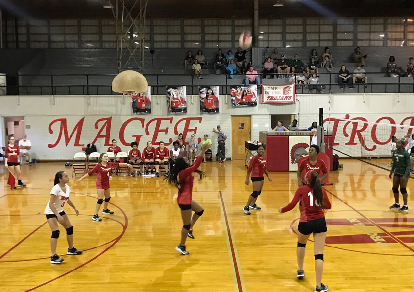 Magee Trojan Volleyball teams fought a tough battle with the West Jones Mustangs Thursday night. Although the Junior Varsity Trojans put up a valiant effort, they started off the night losing the first set. Trying their best to gain momentum but falling short in the second set as well, the Junior Varsity game ended with the Mustangs winning two out of two sets.